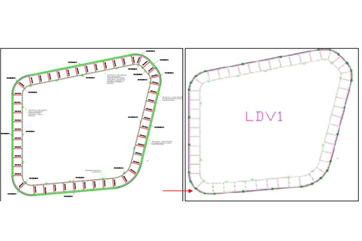 La línea de vida forma un circuito cerrado de 148 metros alrededor de la cubierta del casino Odiseo. Esta línea está sujeta con 28 puntos de anclaje y un cable de 8 milímetros que van anclados a la estructura tal y como se muestra en el siguiente plano.