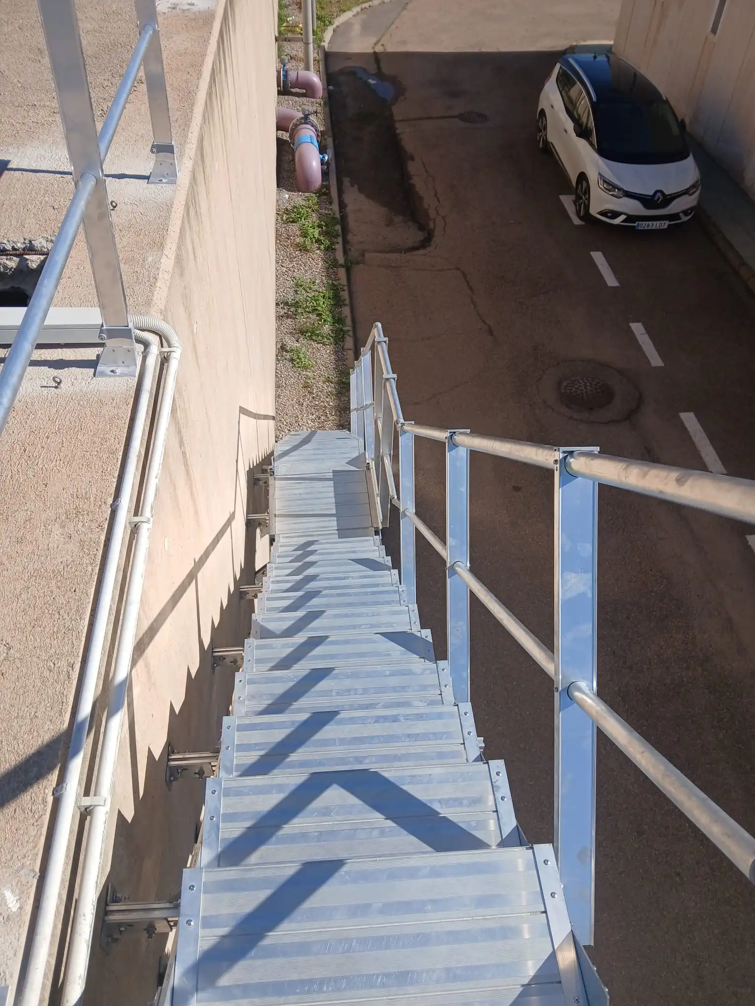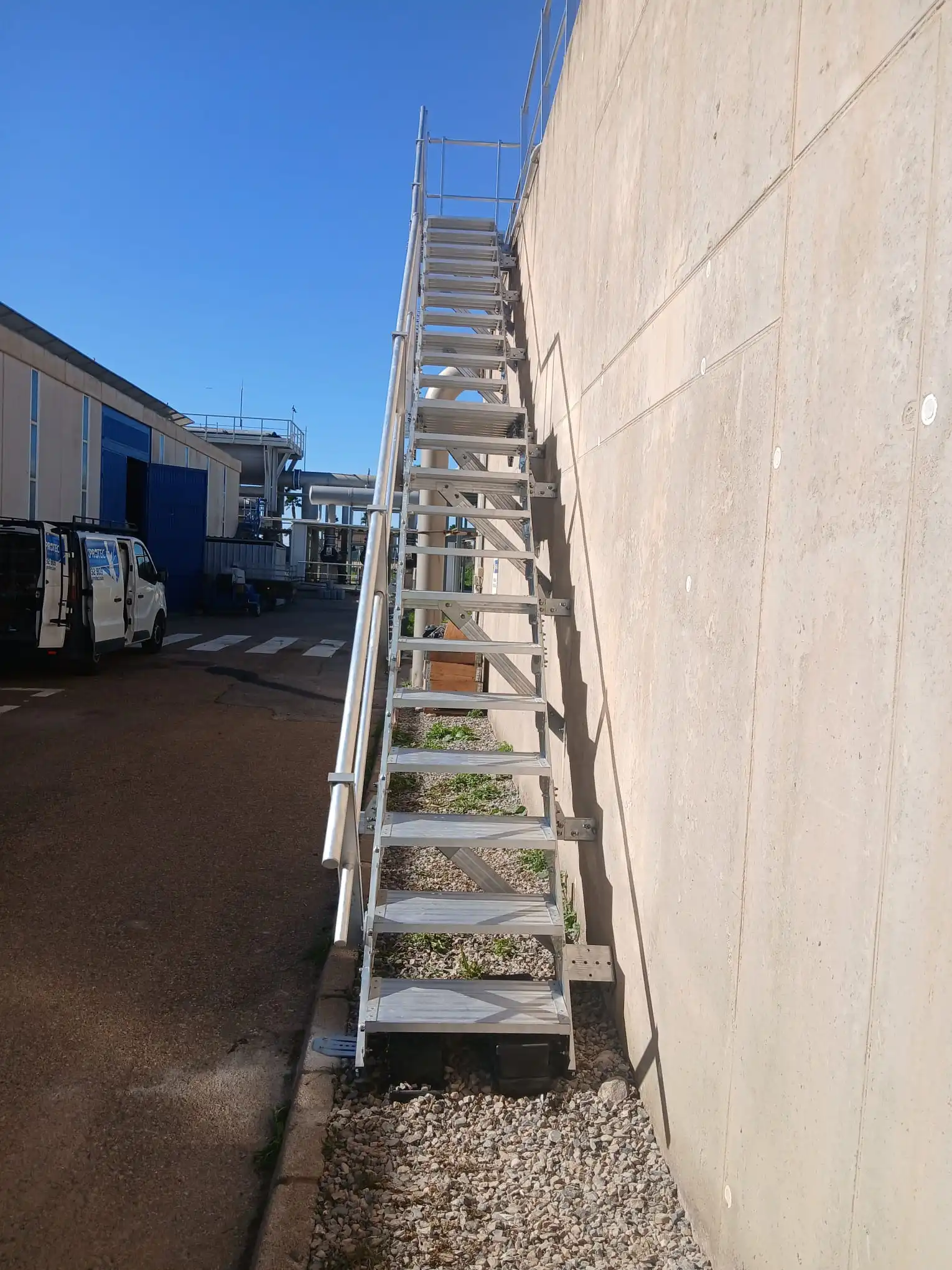 Solución de acceso seguro: escalera fija con desembarco a 4,70 m