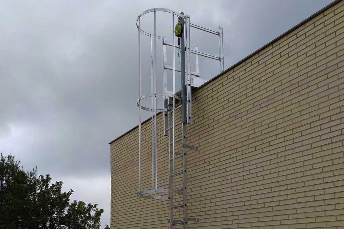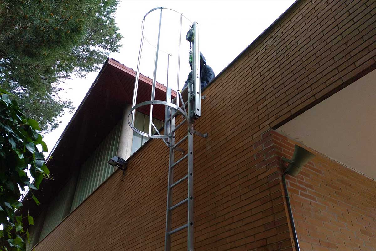 En Workprotec hemos instalado escaleras verticales de acceso fijas a las cubiertas (también llamadas escaleras de gato) en un colegio de niños para el mantenimiento y revisión de las instalaciones, sumideros, bajantes… de una forma cómoda y segura para los usuarios, teniendo muy en cuenta el ambiente donde estarán ubicadas al tratarse de niños de corta edad.