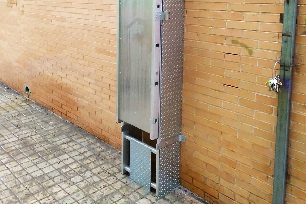 Las escaleras de acceso vertical instaladas en el colegio tenían que disponer de todos los elementos de seguridad y protección tanto para los usuarios y personal de mantenimiento como control de acceso y protección frente a los niños.