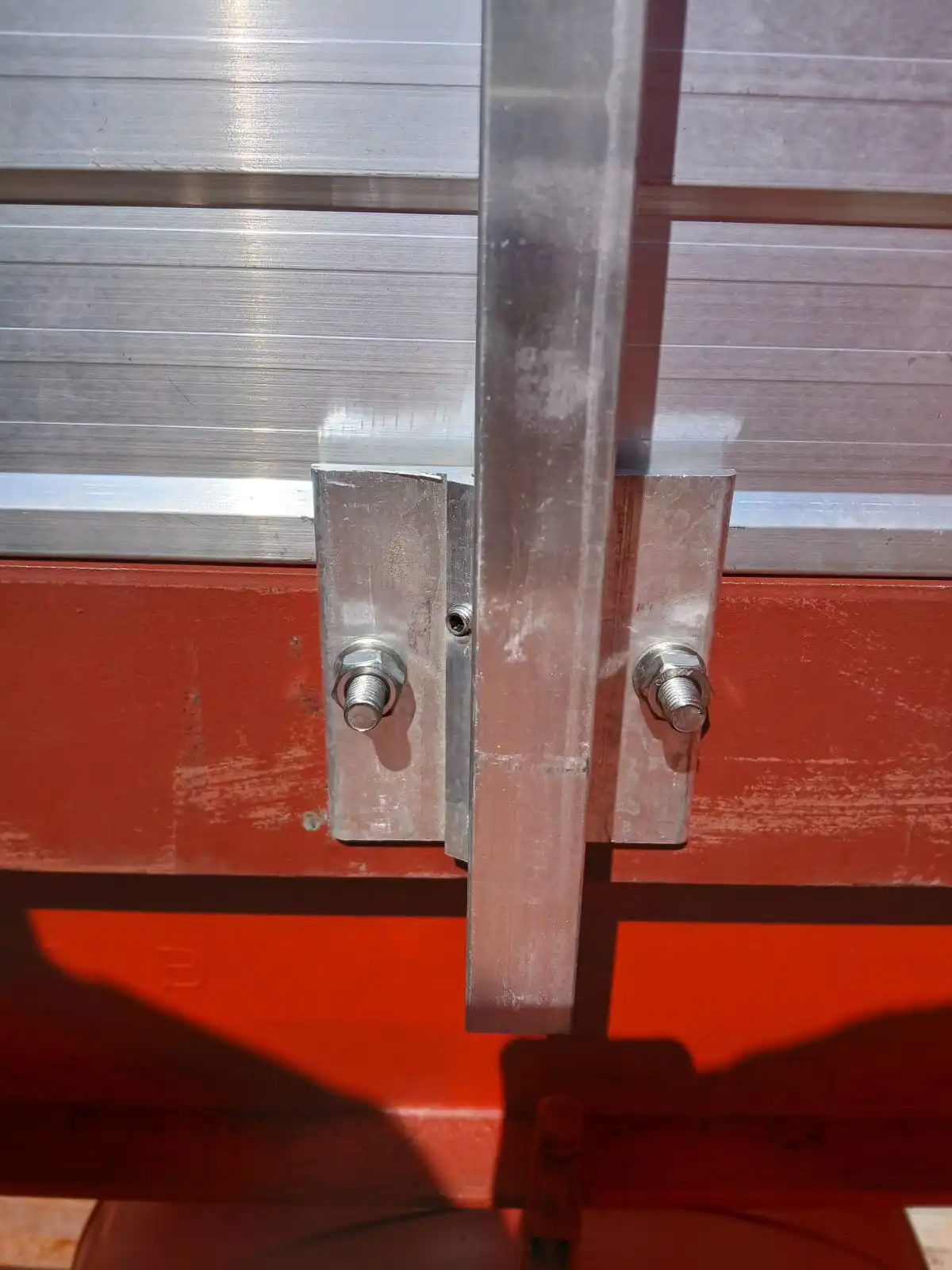Se han instalado ángulos metálicos sobre vigas existentes, generando una base resistente y segura para la pasarela. El sistema se ha diseñado para integrarse sin modificar la estructura principal de la cubierta.