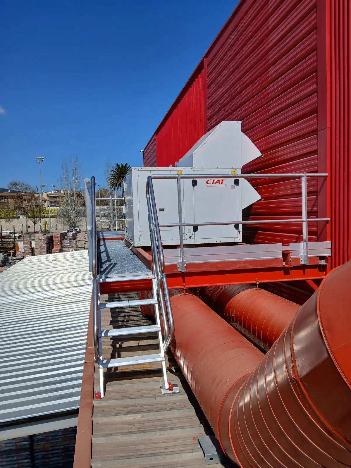 Acceso seguro a equipos de climatización en cubierta industrial en Mataró