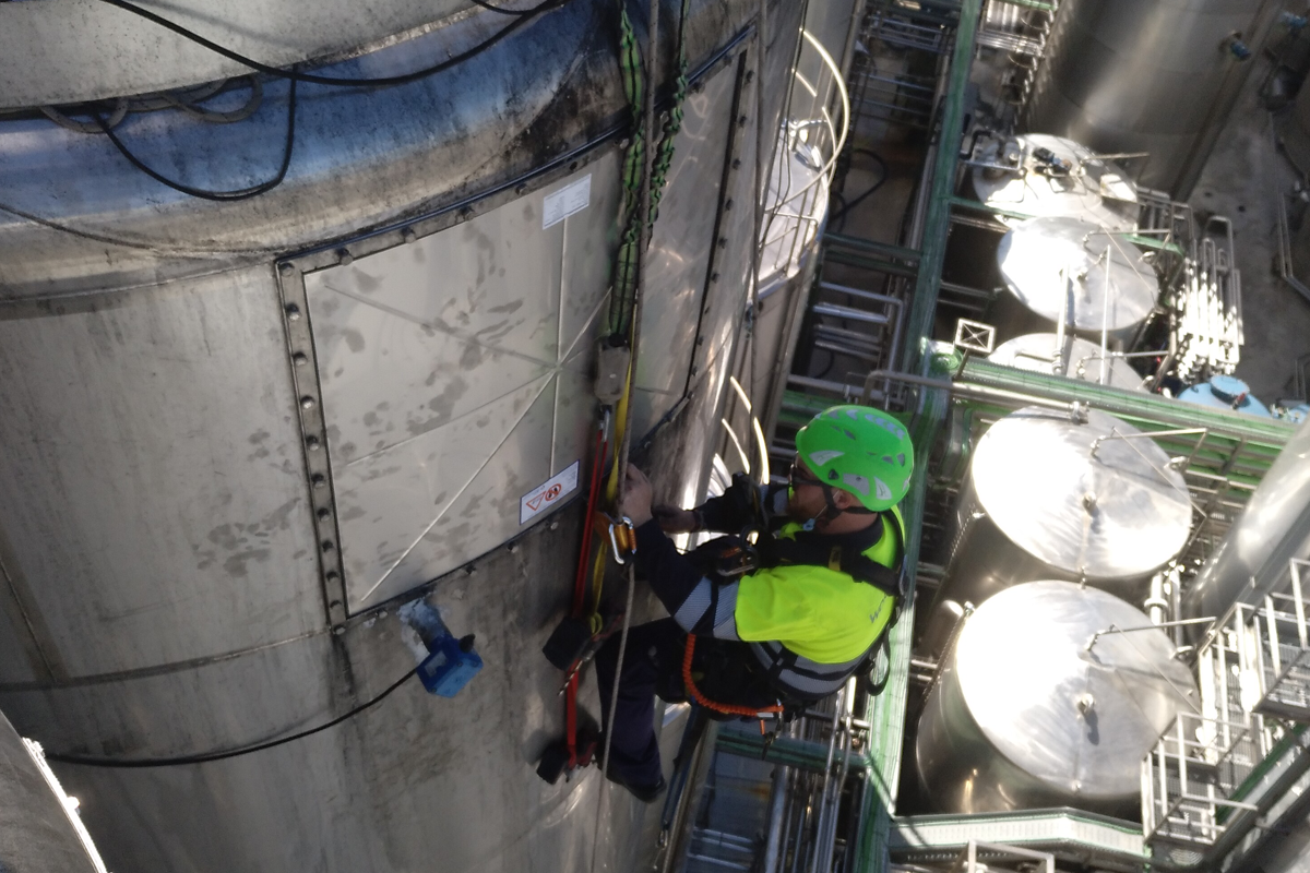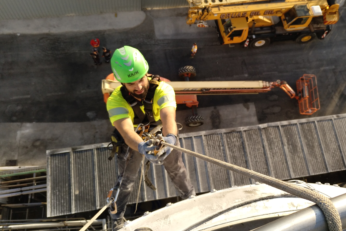 Al ser un lugar de tan difícil acceso, se diseñó una solución de seguridad mediante técnicas de trabajos verticales para que el operario pudiese acceder sin inconvenientes a la zona de trabajo. De esta forma pudimos solucionar el problema de forma rápida y eficiente.