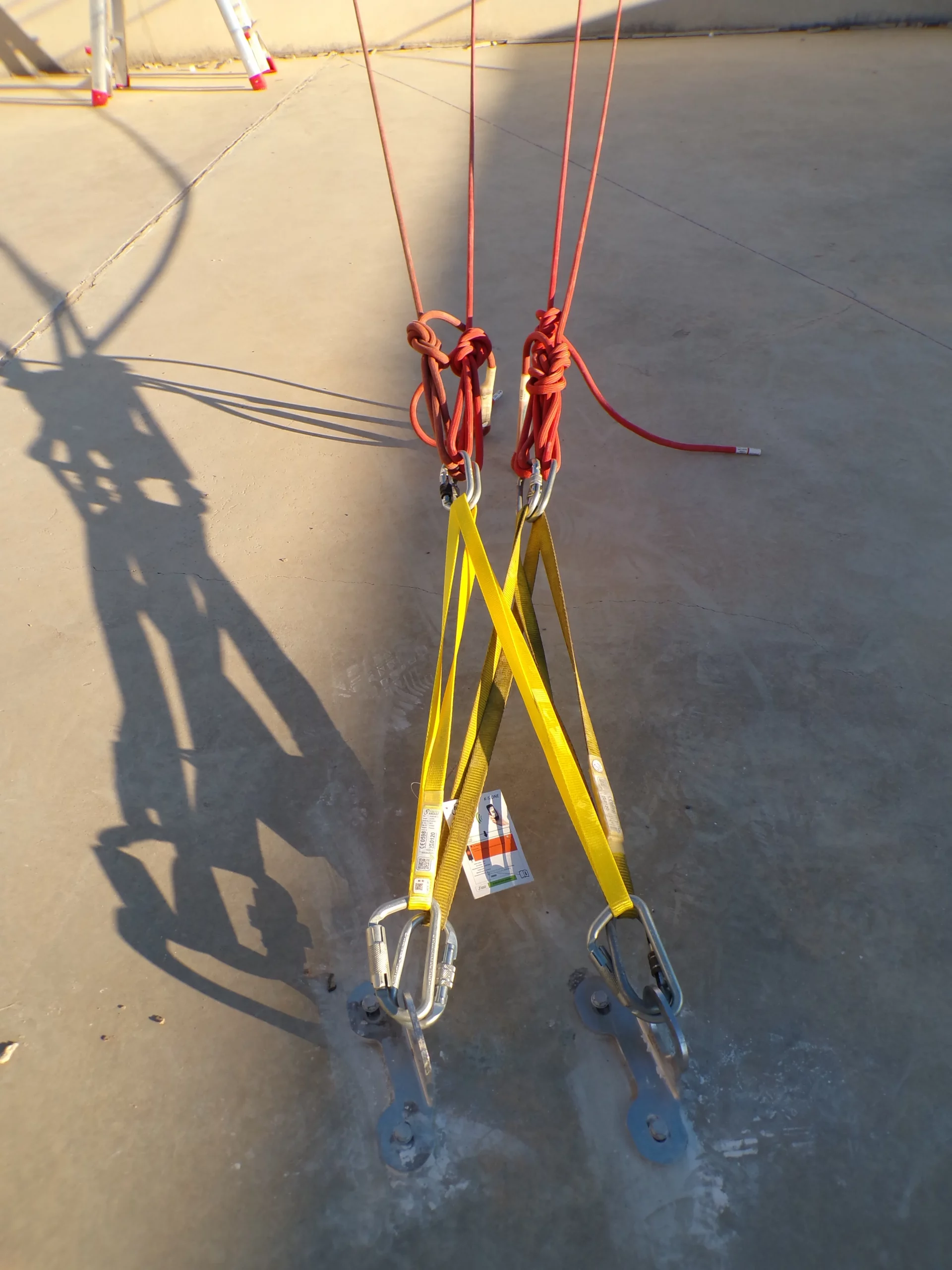 Estos anclajes EN795-A son fundamentales para proporcionar una protección anticaídas fiable, especialmente en situaciones donde no es posible emplear plataformas elevadoras o andamios, como en este caso.